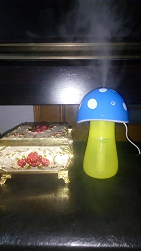 LAYlala® Unique Beautiful Mushroom Design 200ml Ultrasonic USB Air Humidifier Purifier with Led Light for Office Home Car Travel (bule)